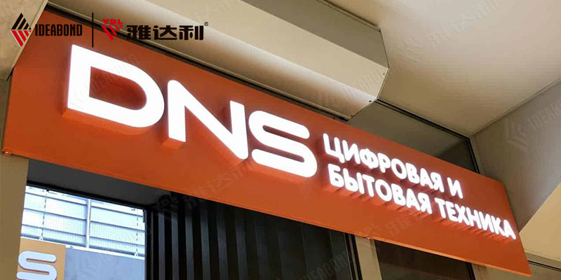 戶外門頭:聚酯(zhǐ)鋁塑板具有輕(qīng)便耐用易加工可塑性強的特點 可適用(yòng)於各類場(chǎng)所戶外門頭裝飾,如商業街、酒店、賓館、辦公樓、廣場等