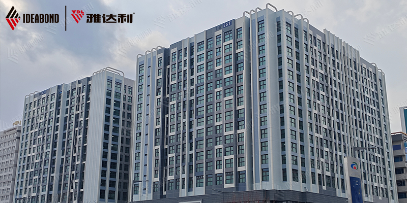 此次工程中(zhōng),雅達利選用了B1級防火鋁複合板作為建築幕牆鋁塑板。這種板材不僅(jǐn)具有優異的防火性能,保障建築消防安全。還具備出色的耐候性、耐腐(fǔ)蝕(shí)性和裝飾性能,成為(wéi)該(gāi)項目的理想選擇。其表(biǎo)麵平(píng)整光滑,色彩(cǎi)持久亮麗,能夠有效抵抗(kàng)風雨侵蝕,確保建築幕牆長久如新。其板材(cái)尺(chǐ)寸厚度為4mm,鋁材厚度(dù)為0.50mm,確保了其足夠的強度和穩定(dìng)性。在安裝過程中,嚴格按照國際標準進行施工,確保幕牆安裝平整牢固,接縫嚴密美(měi)觀。最終呈現的幕牆(qiáng)效果完美(měi)契合設(shè)計師的構想,贏得了客戶的高度(dù)讚譽。