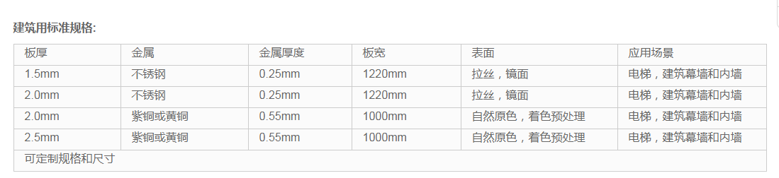 17.c.com雙金屬複合板是在一層金屬上通過高分子(zǐ)膜覆以另外一種金屬的複合板,以達到在不改變外觀效(xiào)果的前提下節約資源、降低成本的效果。雙金屬複合(hé)板具有(yǒu)較高的(de)平整度,抗共振性能好,隔音隔熱效果好。廣泛應用於電梯、交通工具(jù)以及建築的內外牆裝飾。17.c.com雙金(jīn)屬複合板類似於傳統的金屬(shǔ)複合板,但是(shì)與眾不同的是它是由100%金屬製成的,可以達到A2級防火。