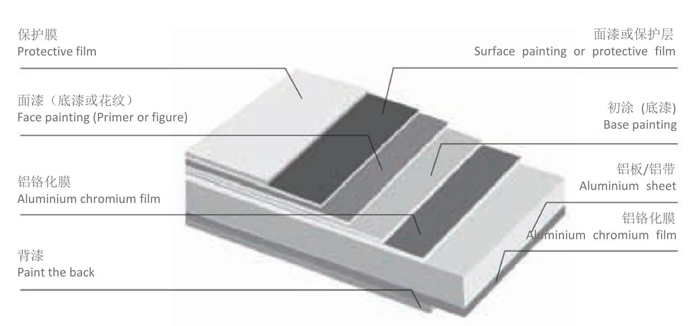 鋁單板是(shì)取鋁合金麵板為基料,經過預(yù)處理(lǐ)後,塗(tú)裝上底漆,顏色麵漆,表層采用氟碳噴塗而成。