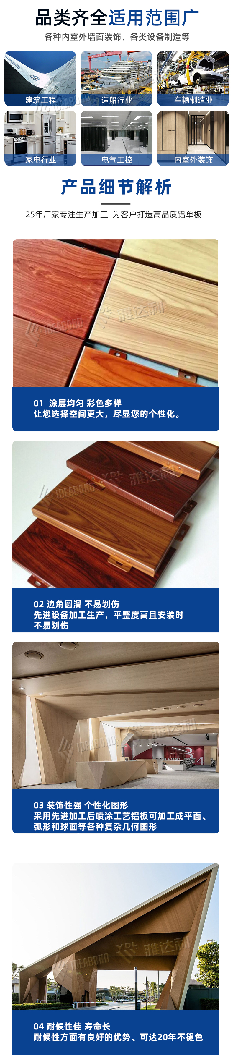 5、施工快捷、更省成本:轉印(yìn)木紋鋁(lǚ)單板出廠時(shí)己成形,無須後期加工,所以施(shī)工時隻須直接安裝,成本低(dī),更換快捷。